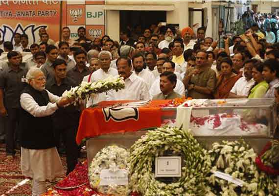 Parli: Tens of thousands of mourning supporters and distraught family members today bid a tearful farewell to Gopinath Munde, Maharashtra BJP's tallest mass leader and architect of its impressive victory in the Lok Sabha elections,