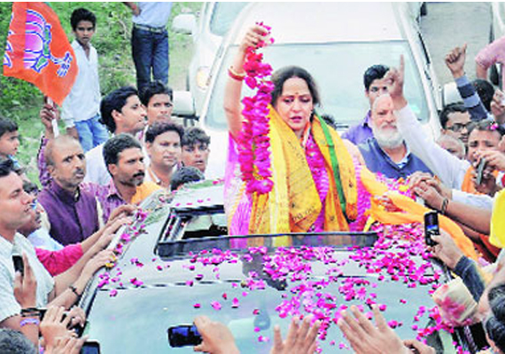 Mathura: Huge crowds Thursday lined up along the roads in this Uttar Pradesh town as Bollywood actor-turned-politician Hema Malini, who is the BJP candidate for the Lok Sabha polls, asked people to vote for her.