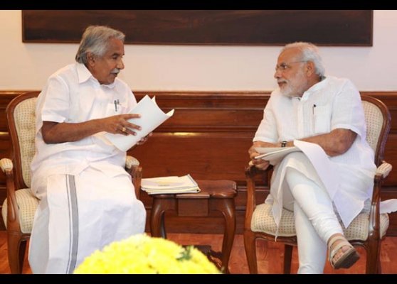 New Delhi: Kerala Chief Minister Oommen Chandy, accompanied by eight-member ministerial delegation, today called on the Prime Minister Narendra Modi.