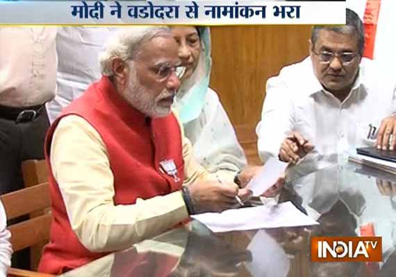 Vadodara: Gujarat Chief Minister and BJP's prime ministerial candidate Narendra Modi today filed his nomination papers from Vadodara Lok Sabha seat.