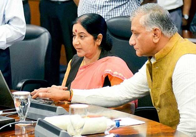 “I salute Gen (retd) VK Singh,” Modi said as he hailed the “unprecedented” rescue mission led by the minister for evacuating Indians out of Yemen, for which External Affairs Minister Sushma Swaraj, too, came in for praise from the Prime Minister.