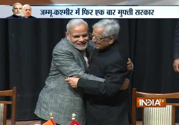 Jammu: Peoples Democratic Party (PDP) patron Mufti Muhammad Sayeed was today sworn-in as the Chief Minister of Jammu and Kashmir in the presence of Prime Minister Narenda Modi.