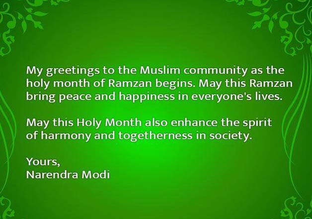 “My greetings to the Muslim community as the holy month of Ramzan begins. May this Ramzan bring peace and happiness in everyone's lives,” the Prime Minister said in his message.