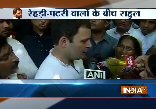 New Delhi: Congress vice president Rahul Gandhi today met street vendors in the Raghubir Nagar area of Delhi.