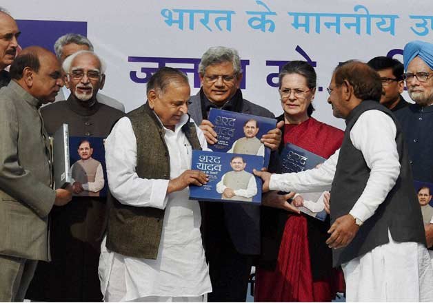 New Delhi: Keeping aside their political differences, a galaxy of leaders including Vice-President Hamid Ansari, Congress President Sonia Gandhi, Bihar Chief Minister Nitish Kumar and Union Minister Venkaiah Naidu, today attended the launch of a book based on the life of JD(U) President Sharad Yadav here.