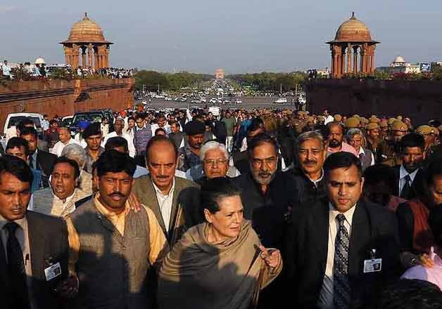 The Gandhis and other party leaders will march from Parliament House to Rashtrapati Bhavan to plead with the President that as head of the nation, he should ensure an end to "the atmosphere of intolerance, intemperate behaviour, violence and communal polarisation", Congress sources said.