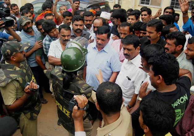 At Madikeri, violence erupted when a group taking out "Tipu Sultan Jayanti" procession came face to face with a agitators protesting the celebrations.