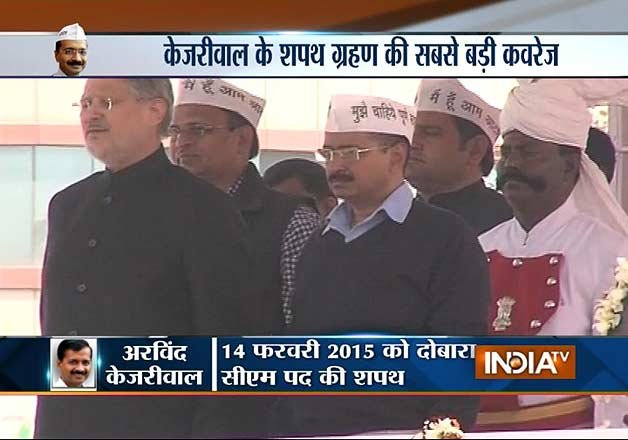 Kejriwal had also invited Prime Minister Narendra Modi to the oath-taking ceremony but Modi could not attend the event as he had some prior engagements in Maharashtra today. He has already asked Chief Secretary D M Spolia to start work on a roadmap to implement AAP's 70-point election manifesto.