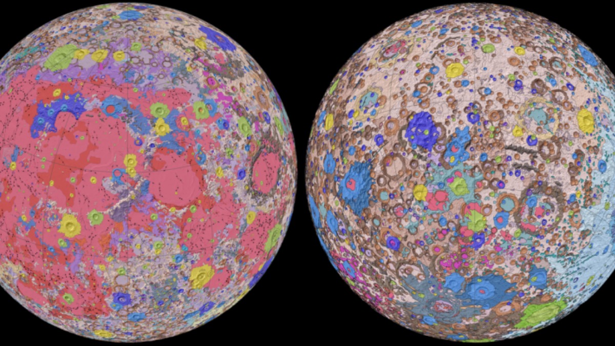 The United States Geological Survey (USGS) has released a 1:5,000,000 scale map recently which reveals a lot about the surface of the Moon. It is colour-coded for scientists, researchers and lunar enthusiasts to easily study the Moon’s surface and it can also aid future research projects involving the Moon.