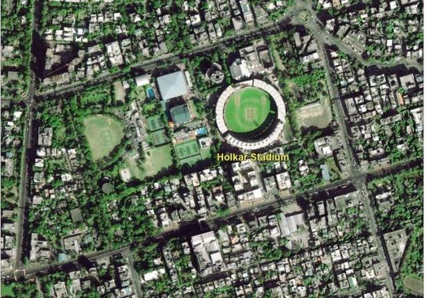 The first day image captured by India's recently launched weather observation Cartosat-2 series satellite shows a part of Indore city in Madhya Pradesh with the Holkar Cricket Stadium in the centre.