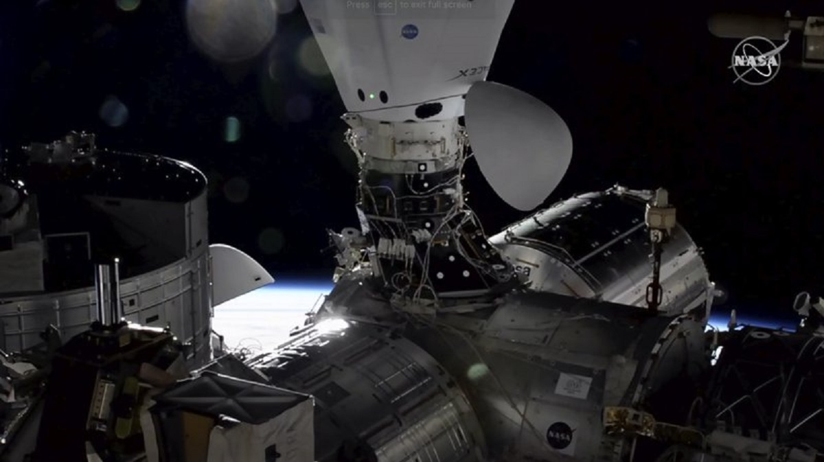 The cargo Dragon will remain at the space station for a month, before parachuting into the Atlantic with science samples and discarded gear. The crew Dragon will stay up until spring.