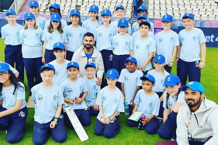 Members of the Indian team, including Kohli, KL Rahul, Hardik Pandya and Rishabh Pant attended a cricket clinic for school kids arranged by the ICC at the Rose Bowl Stadium on Thursday.