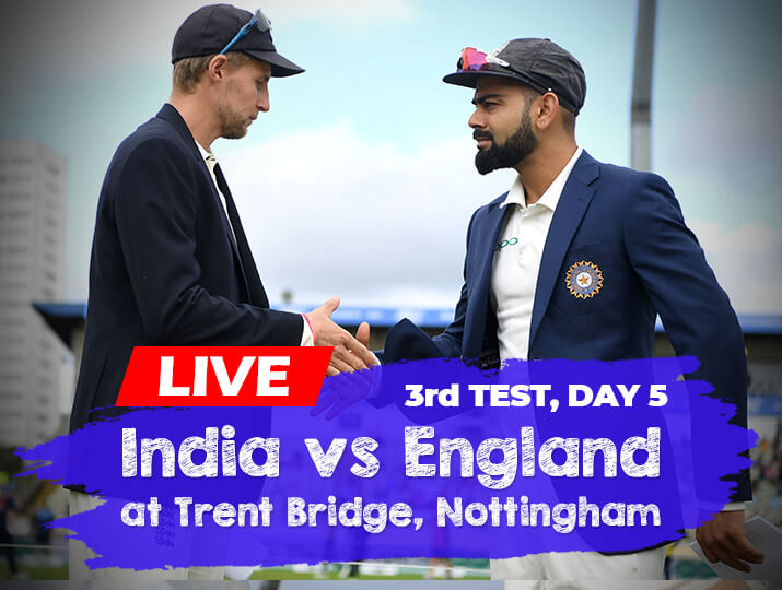 Live Cricket Streaming, IND vs ENG 3rd Test Day 5: Here all the live match information such as India vs England 3rd Test live streaming cricket, India vs England live cricket match, India vs England live, Live Cricket India vs England, Cricket Score India vs England, Live Cricket Ind vs Eng, you can find them here. All the information and details as to when, where and how you can watch the live cricket India vs England (IND vs ENG), 3rd Test match of the five-match Test series between England and India at the Trent Bridge. (LIVE UPDATES) (LIVE SCORECARD)Ind vs Eng Live Score: