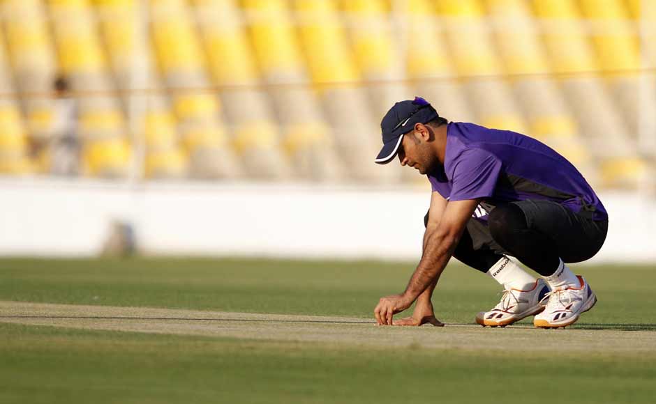 Dhoni was seen having a discussion with the curator as he had a look at the preparations for the crucial game.