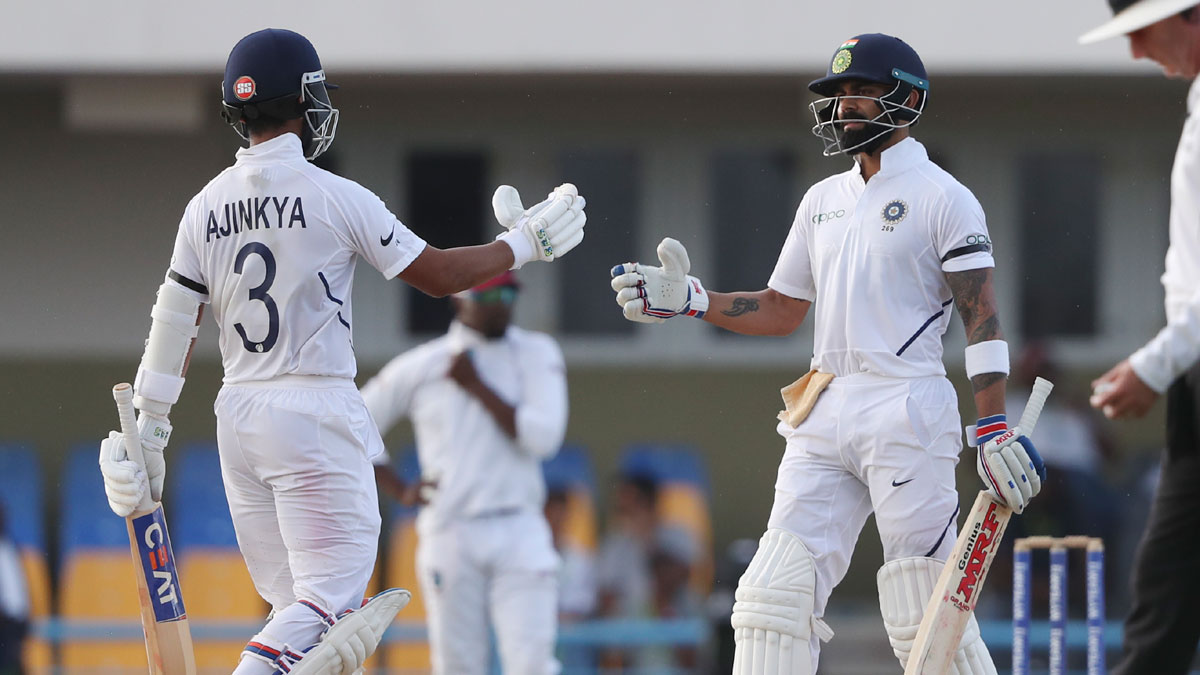 Brief Day 3 report: Ajinkya Rahane hit back-to-back half-centuries while skipper Virat Kohli too made a well-made fifty as India took control of the first cricket Test against the West Indies here. After a career-defining 81 in the first innings, Rahane remained unbeaten on 53 while Kohli was batting on 51 as India reached 185 for three at stumps on the third day of the match on Saturday. The visitors now enjoy an overall lead of 260 runs with seven wickets in hand and two full days play remaining. (Read full day 3 report)