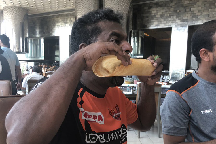 In the photo tweeted by Goswami, Murali is seen absolutely devouring a dosa, which the player aptly captioned: "Breakfast view cannot get better this morning. murali sir killing the dosa and how".