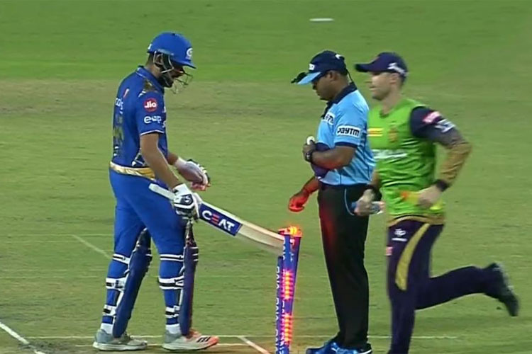 With MI chasing an imposing target of 233 to win and ensure a play-offs berth, Rohit looked in good touch before misreading a Harry Gurney delivery which hit his back leg.