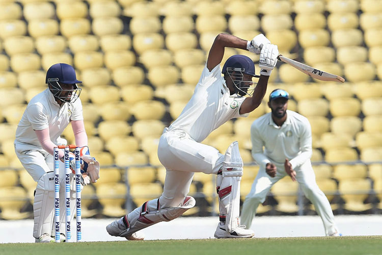 Brief Scores: ROI 330 and 102/2 (Hanuma Vihari 40 not out, Mayank Agarwal 27, Akshay Wakhare 1-31) versus Vidarbha 425 (Akshay Karnewar 102, Akshay Wadkar 73, Sanjay Ramaswamy 65, Rahul Chahar 4-112, K Gowtham 2-33).