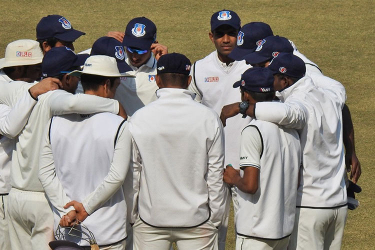 Left-arm spinner Dharmendra Jadeja (4/53) and left-arm military medium Chetan Sakariya (3/29) did bulk of the damage while veteran off-spinner Kamlesh Makvana picked up the other wicket.
