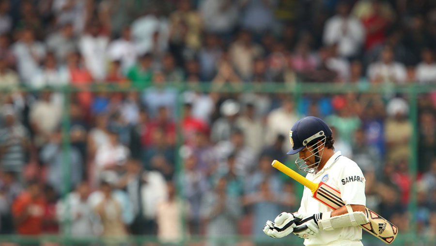 After finishing day 1 with an unbeaten 38, Sachin continued strongly to score his 68th half-century off 91 deliveries. Wankhede had one name echoing through the walls as the fans hoped a perfect swansong, and the legend had 51 centuries to his name already. And just then there was a brief silence. A flatter delivery from Narsingh Deonarine down the offside had taken the thick outside edge of the bat and Darren Sammy completed the dismissal with a good catch in front of his face. Wankhede turned quiet. The quite celebration of the Windies side could be heard from the distant. Sachin walked back from 74 runs off 118 deliveries. The strange eeriness remained until after lunch.