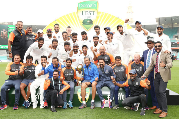 India celebrated a historic test series victory in Australia after the weather-affected fourth match at the Sydney Cricket Ground finished in a draw.