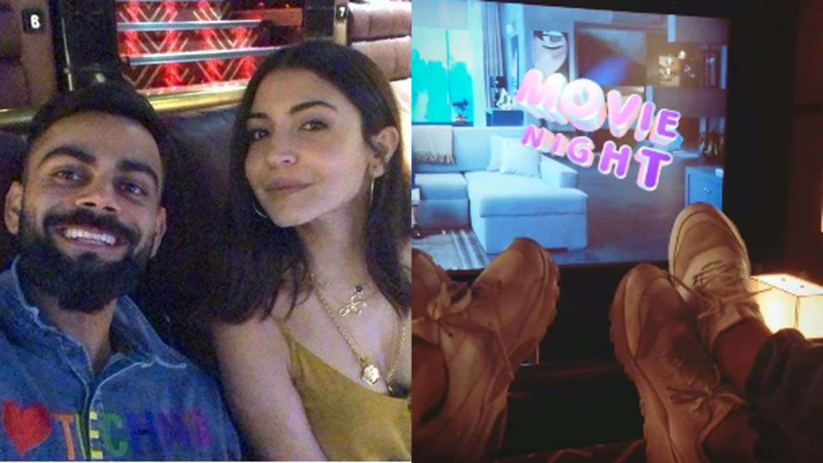 Indian skipper Virat Kohli is enjoying his time of cricket watching movie on Wednesday night with wife Anushka Sharma. He posted a picture of the two on his Twitter handle and captioned it, "About last night. At the movies with this hottie @AnushkaSharma".