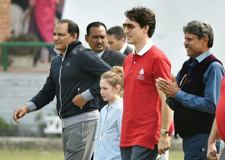 Canadian Prime Minister Justin Trudeau, who is in India on a week-long visit to India, was on Thursday seen playing cricket with his children in New Delhi on the sidelines of his visit. Former India captains Kapil Dev and Mohammad Azharuddin were also present at the Modern School ground in the Capital.