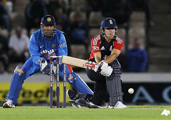 Southampton, Sept 7: England captain Alastair Cook struck an unbeaten 80 off 63 balls to guide his team to a seven-wicket win over India in a rain-affected second one-day international at the Rose Bowl on Tuesday.