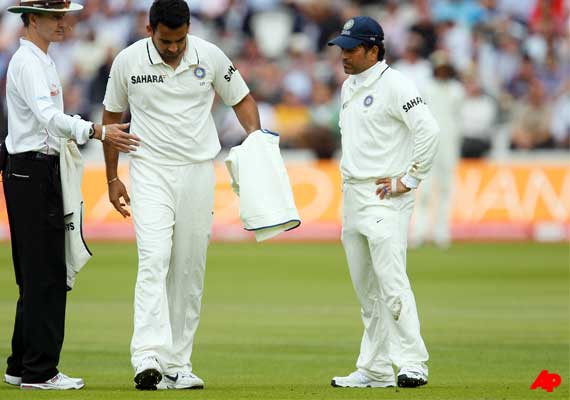 London, July 21: Team India suffered a major blow on day one of the first Test with England at Lord's, when Zaheer Khan pulled up with an apparent hamstring injury - leaving England on 127-2 in a Thursday afternoon session that was interrupted by rain.