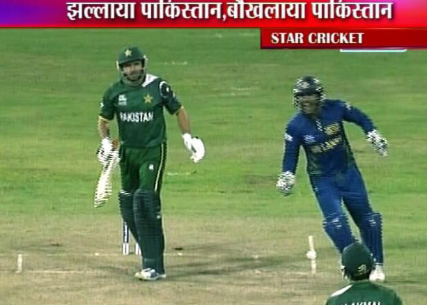 On the second ball of the last over, Akmal failed to make a run on Kulsekara's ball. He sat down on the wicket holding his head in hands.