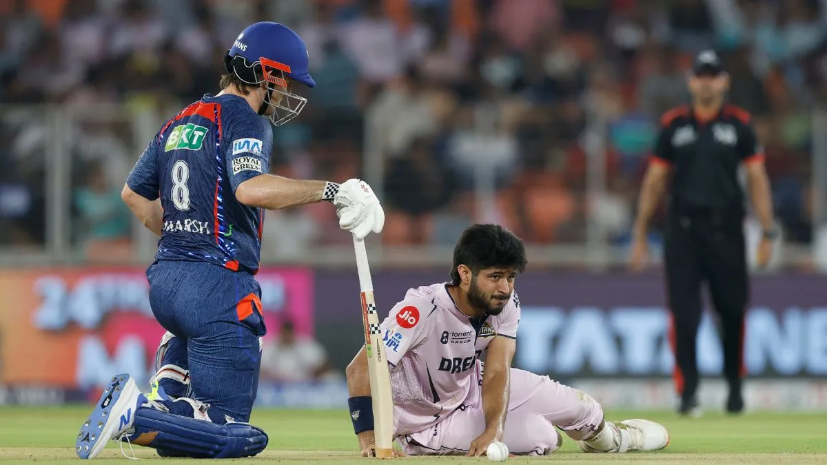 Arshad slipped and fell while releasing the delivery. He landed awkwardly on his left shoulder, and the physio was quick to run onto the field to check up on the pacer. Furthermore, things went from bad to worse for Gujarat as Arshad slipped and fell for the second time in the same over.