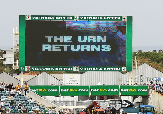 Perth, Australia: Scoreboard at the end of the third Ashes cricket test between Australia and England at the WACA ground in Perth: