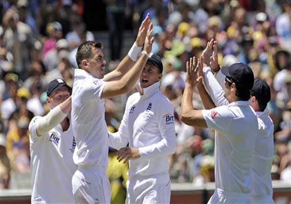 Melbourne, Australia: Jimmy Anderson took three wickets as part of a dominant England bowling display Friday which left Australia in trouble on 164-9 at stumps on the second day of the fourth Ashes test.