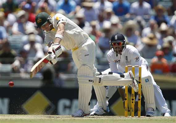 The fast, bouncy wicket was expected to favor the pacemen but the English attack struggled to maintain the right length for much of the opening day and conceded 43 boundaries and five sixes.