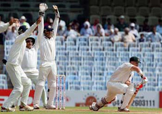 Mohali, Mar 17: With Australia reeling at 75 for three in their second innings and trailing by 16 runs at stumps on day four Saturday, India were sniffing at a chance of a win going into the final day's play in the third cricket Test here.