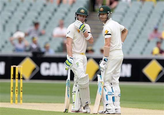 Clarke resumed his innings on 60 and was batting on 85 not out (117 balls, 13 fours) with Smith, who was unbeaten on 98 runs (171 balls, 14 fours) when rain stopped play.