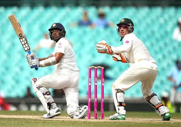 On the next ball, Rohit Sharma survived a stumping from Lyon with the television umpire adjudging the batsman had part of his foot behind the crease before wicketkeeper Brad Haddin dislodged the bails.