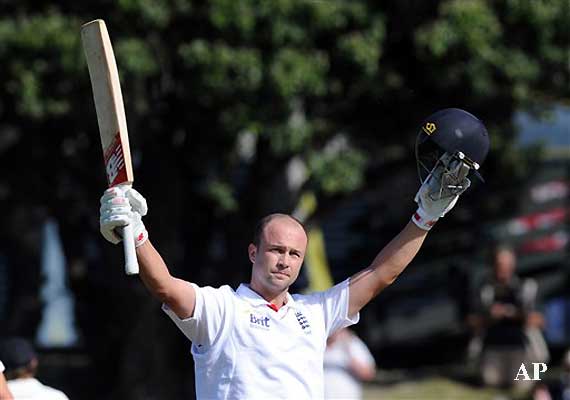 Trott went to the wicket when captain Alastair Cook was out for 17, joining Crompton with England at 26-1. He overtook Compton in the 80s and preceded him to a century, his ninth hundred in 40 tests. He was 121 not out and Kevin Pietersen was 18 not out at the close of play.