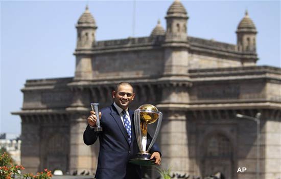 A new-look Dhoni posed with the World Cup trophy and his Man of the Match award of the final at the Gateway of India with the rest of the team. Sources said, Dhoni had promised at Tirupati temple to shave his head if India won the Cup.