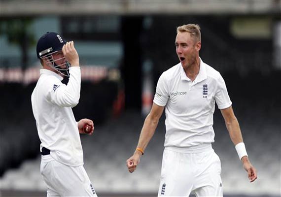LEEDS, England: Stuart Broad became the first England player to take two career test hat tricks while Liam Plunkett finished with five wickets as Sri Lanka collapsed to 257 all out on the first day of the second test on Friday.
