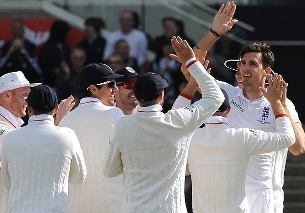 Earlier, Australia was all out for 265 in its second innings just before lunch, with fast bowler Steven Finn taking 6-79 and the man of the match award in his first test in more than two years.