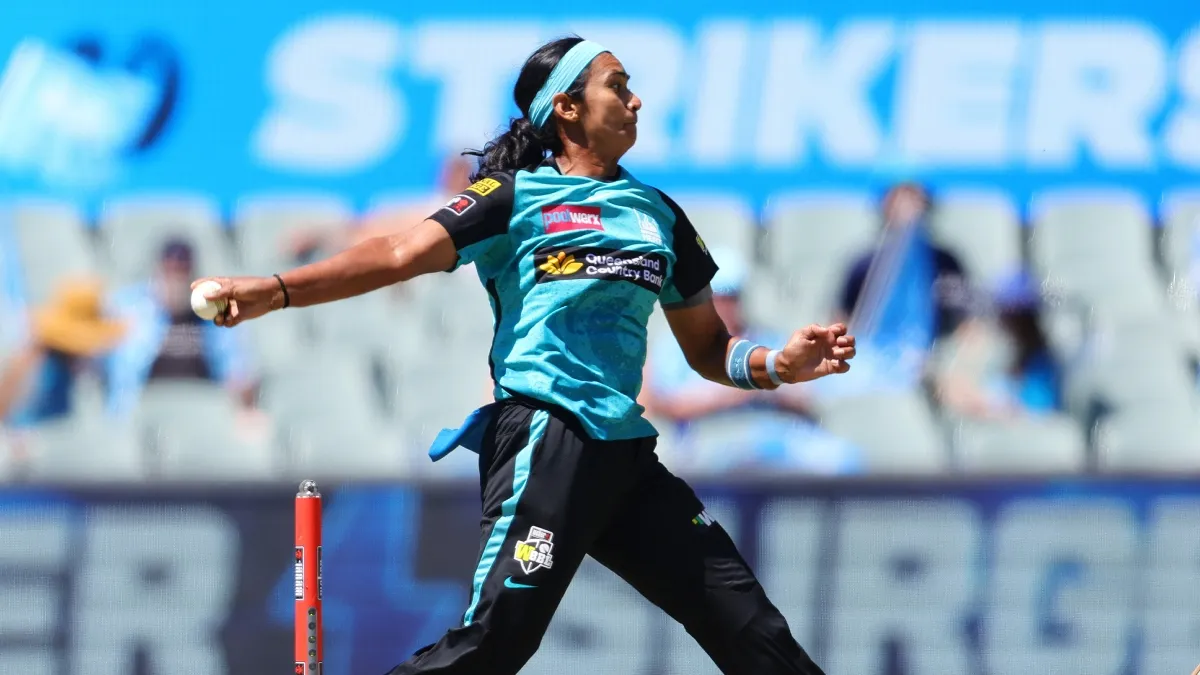 Pandey, who has played alongside Jonassen in the WPL for the Delhi Capitals and recently in the WCPL for the Trinbago Knight Riders drew the first blood in WBBL 10 with the big wicket of Laura Wolvaardt. Pandey, bowling her second over, the third innings of the Strikers' innings, bowled outside off and Wolvaardt couldn't hold herself from playing an aerial shot but handed a simple catch to the mid-off fielder, Jonassen, the Heat captain herself.