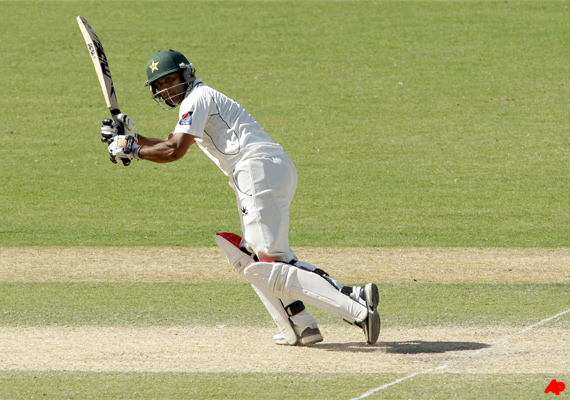 Akmal played some extravagant strokes that included two reverse swept boundaries off Swann. He brought up his second test half—century with a similar stroke for two runs and pumped his fist in joy while raising his bat toward his teammates in the dressing room.
