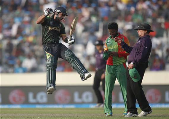 Shehzad scored 111 not out off just 62 deliveries with 10 fours and five sixes as Pakistan piled up 190-5 after electing to bat. Pace bowler Umar Gul then grabbed 3-30 and off-spinner Saeed Ajmal took 2-20 as Bangladesh was restricted to 140-7.