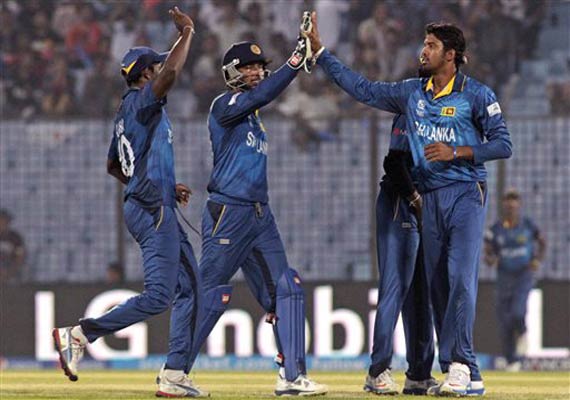Sachitra Senanayake claimed 2-22 for Sri Lanka. Lasith Malinga, Nuwan Kulasekara, Angelo Mathews and Ajantha Mendis grabbed one wicket apiece.