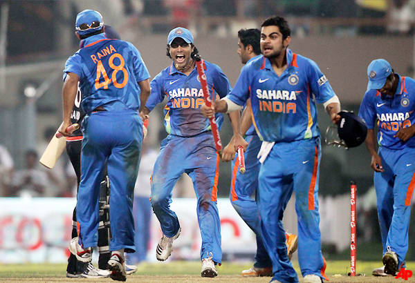 England bowler Steven Finn took two wickets in an over to put India under pressure but the hosts broke the shackles in the slog overs, with 60 coming in the last five overs thanks to Dhoni's late outburst.