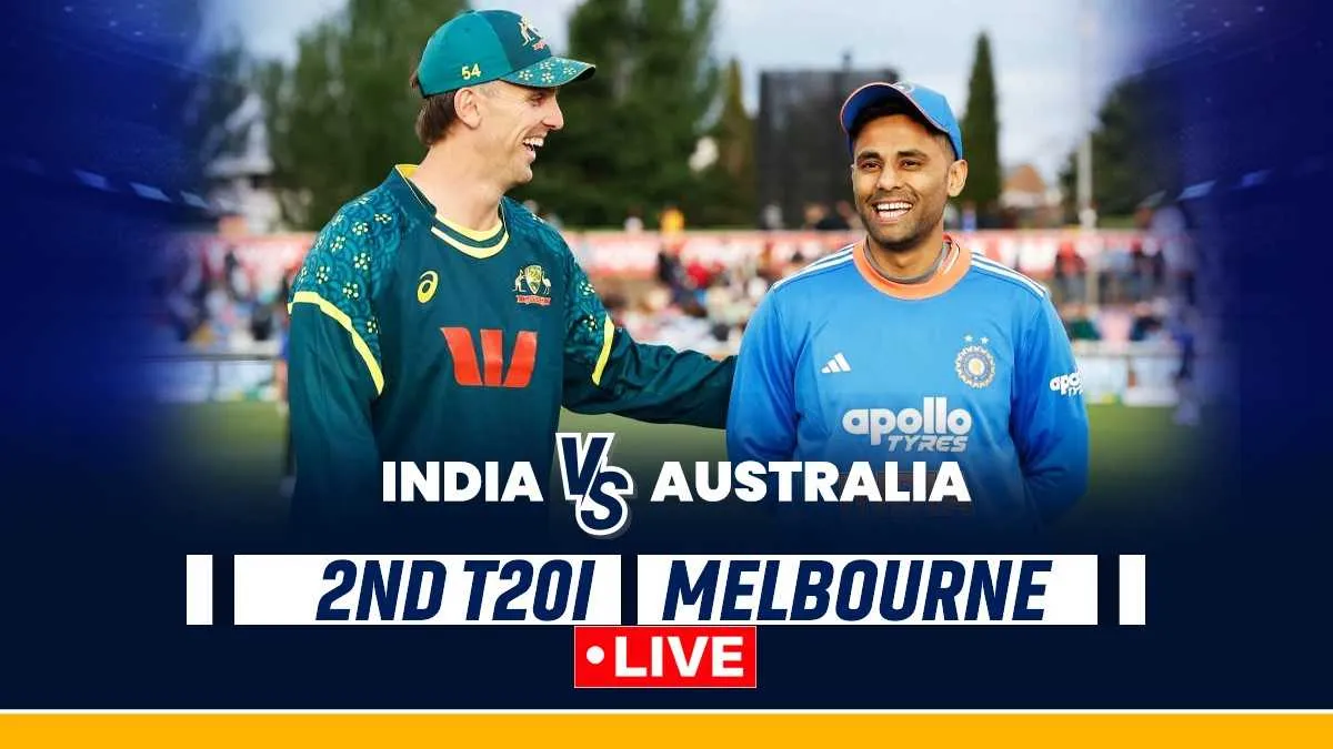 IND vs AUS 2nd T20 Cricket Score Live: The second T20I between India and Australia promises an exciting contest as both teams aim to seize the series lead after the opener was washed out in Canberra. With the T20 World Cup 2026 in India and Sri Lanka on the horizon, this series serves as vital preparation for both sides. India, under Suryakumar Yadav, will look to showcase their depth, with Abhishek Sharma and the skipper himself expected to play key roles in the batting lineup. Australia, led by Mitchell Marsh, continue to back their fearless approach, with Travis Head posing a major threat to India’s bowlers. Josh Hazlewood’s disciplined pace attack will also be crucial as both teams look to strike the right balance before the World Cup.