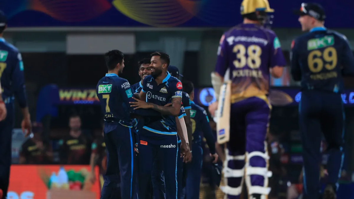 Batting first, Gujarat Titans scored 156 for 9, riding on skipper Hardik Pandya's 67 off 49 balls, while Andre Russell took 4 for 5 in one over.