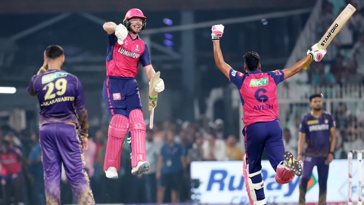 Rajasthan Royals (RR) continue to script miracles in the 2024 edition of the IPL as they pulled of a heist of the highest order as the top-of-the-table clash against the Kolkata Knight Riders (KKR) lived up to its billing with the Men in Pink sneaking home by just two wickets in a run-fest at Eden Gardens on Tuesday, April 16. The Royals equalled their own record of highest successful chase in the IPL as they tracked down 224 runs on the final ball of the match with Jos Buttler smashing his seventh century in the tournament, breaking Chris Gayle's record.
