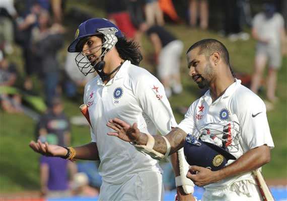 Opener Shikhar Dhawan then hit an attacking unbeaten half-century as India reached 100 for two at close, still trailing by 92 runs at the Basin Reserve.
